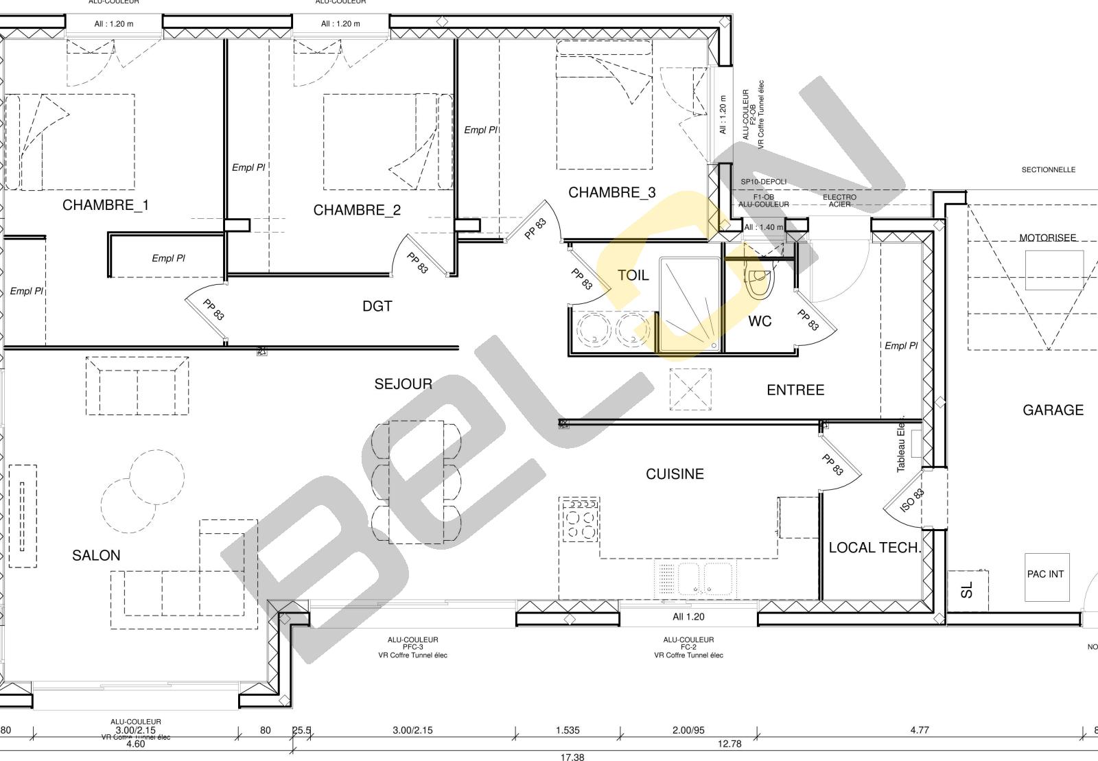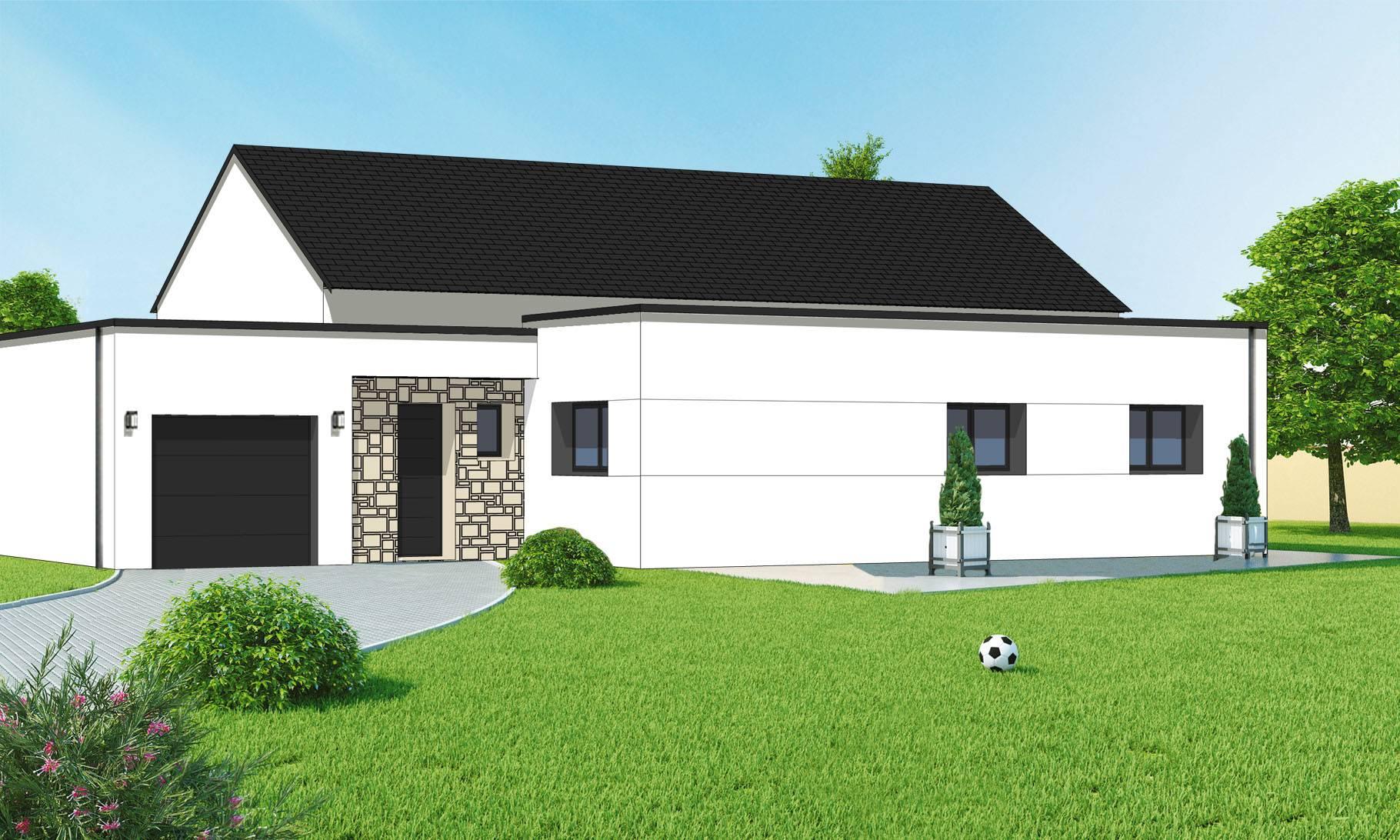 Plan de maison plain-pied - 102m² - 3 chambres