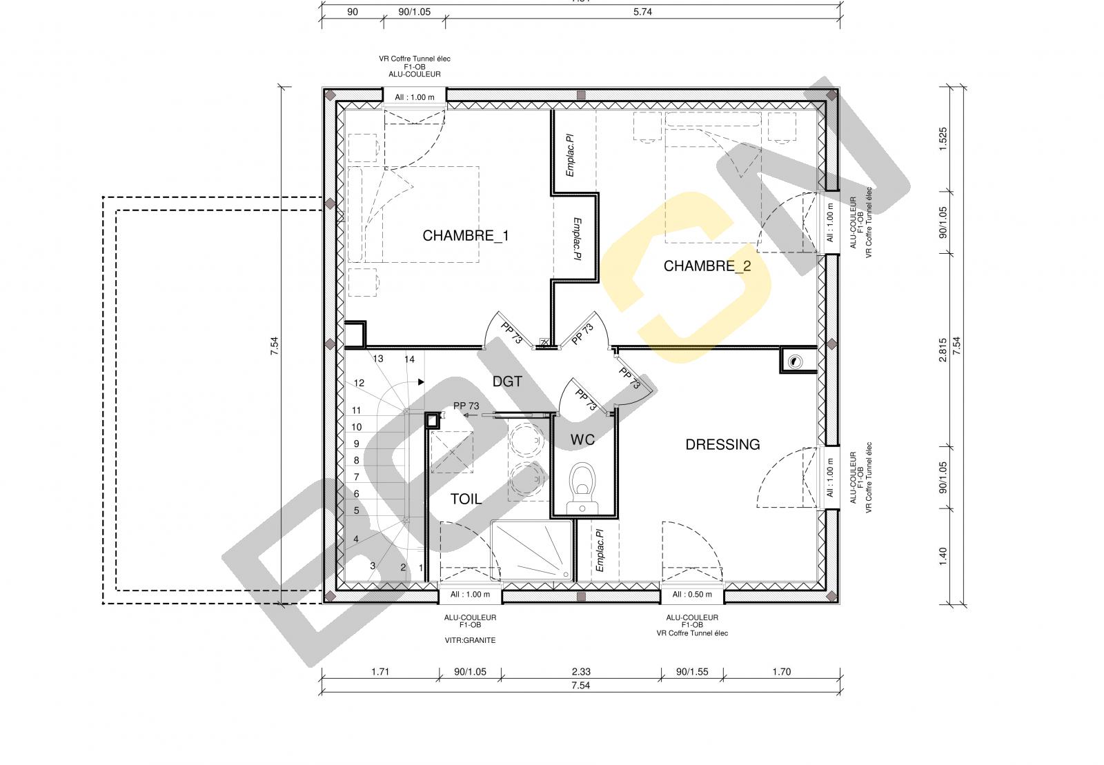 Plan de maison à étage - 84m² - 3 chambres