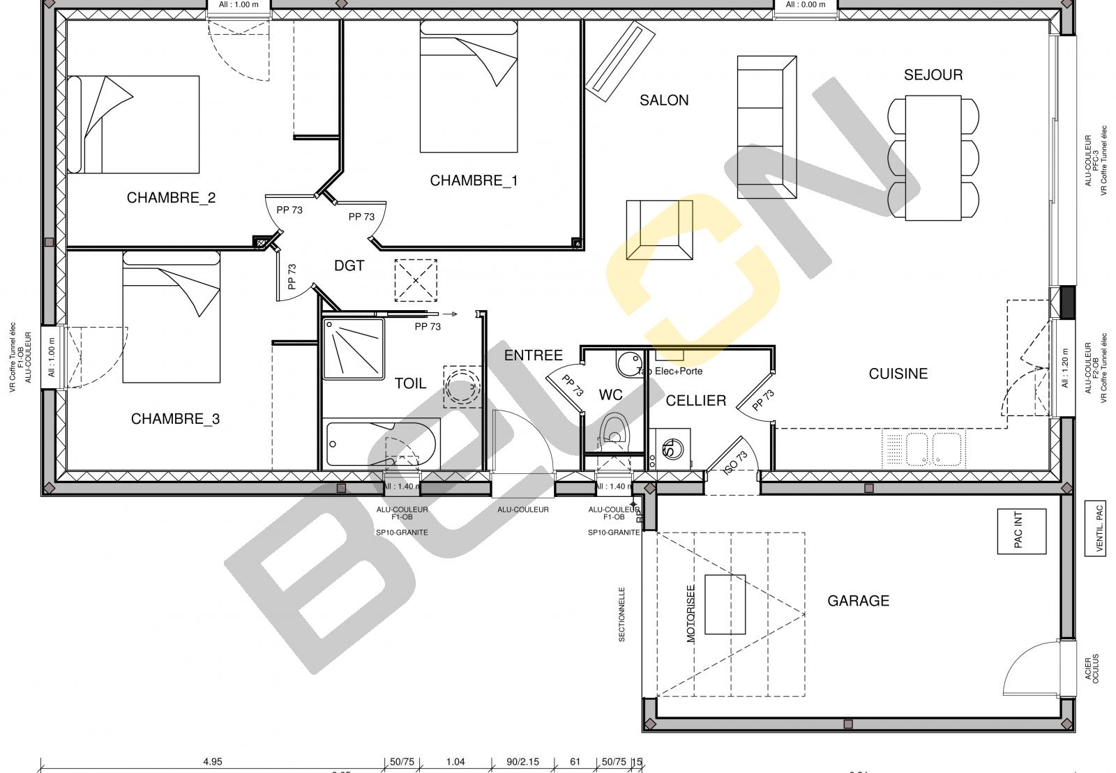 Plan de maison plain-pied - 88.99m² - 3 chambres