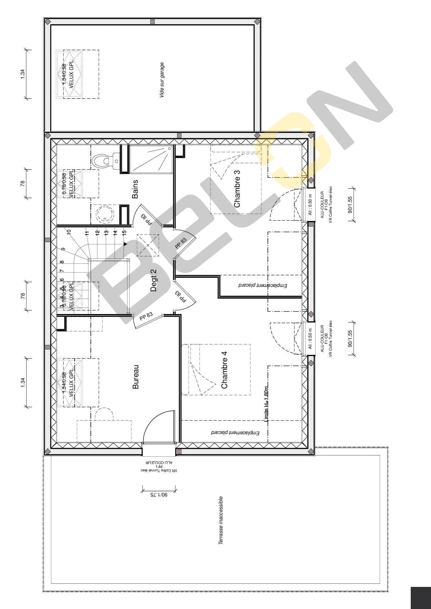 Plan de maison à étage - 120m² - 4 chambres