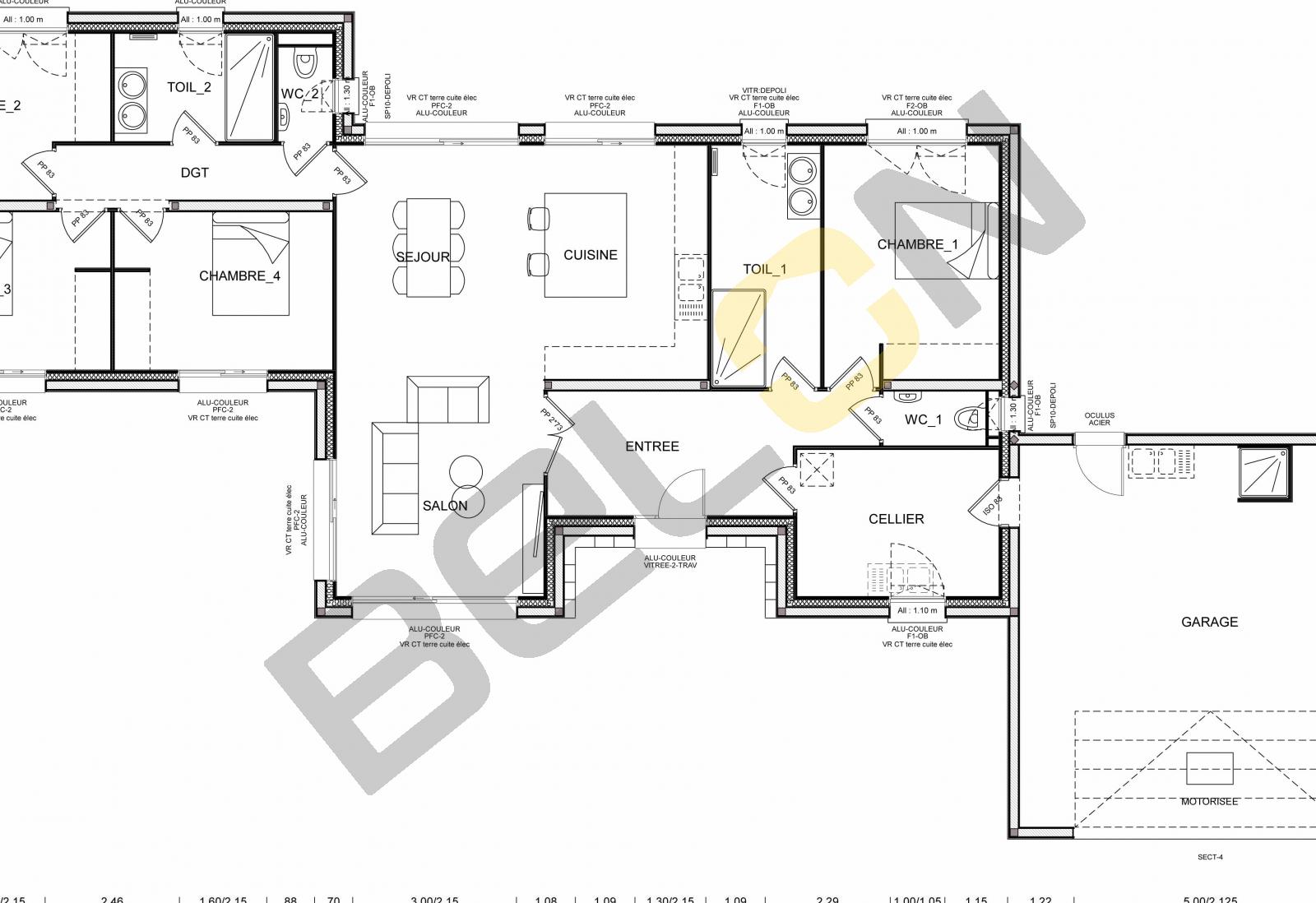 Plan de maison plain-pied - 137.74m² - 4 chambres