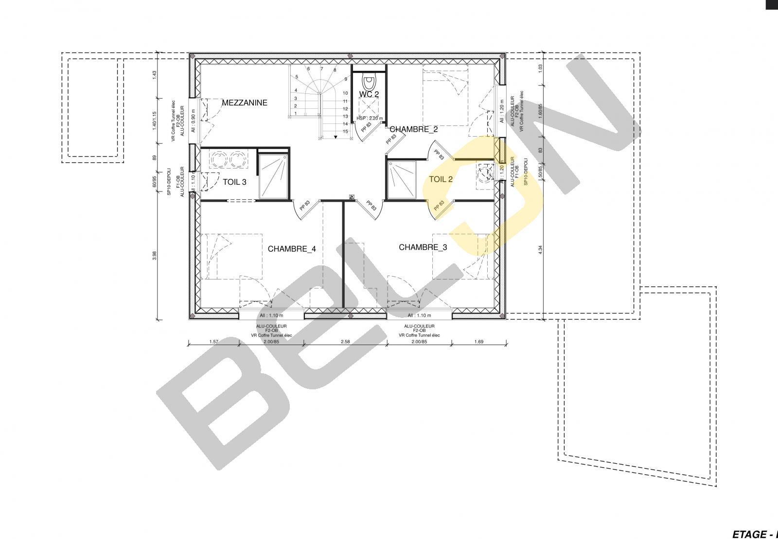 Plan de maison à étage - 143.56m² - 4 chambres