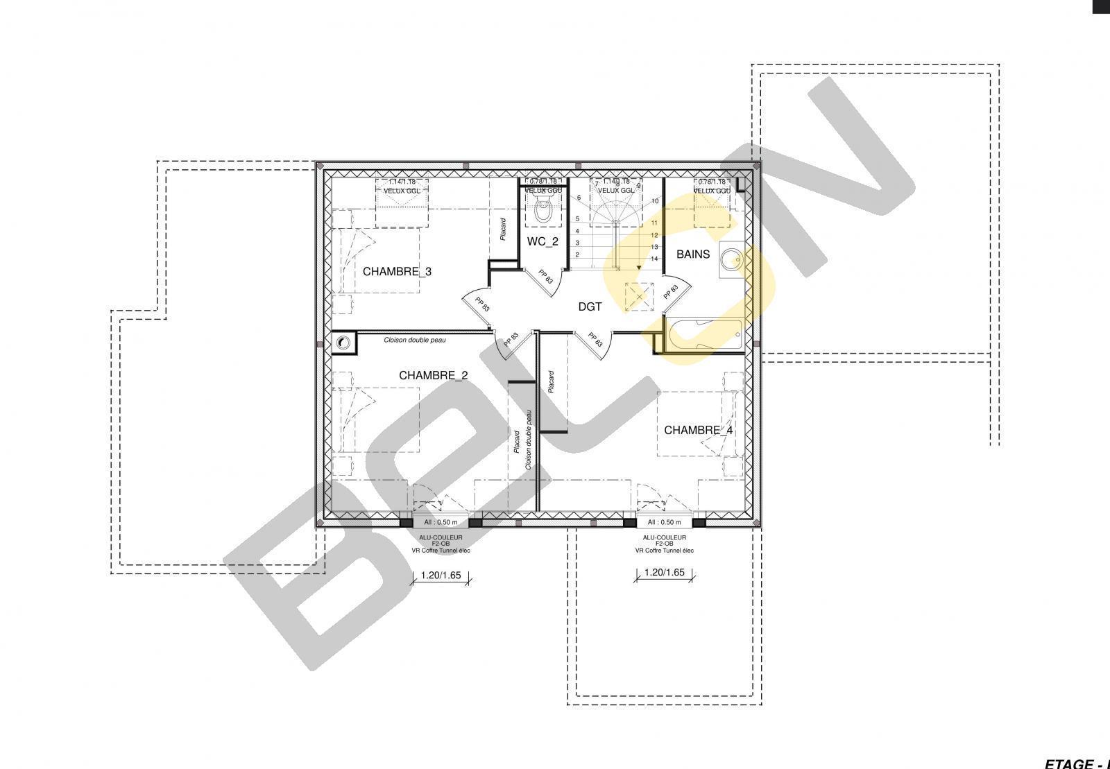 Plan de maison à étage - 156.07m² - 4 chambres
