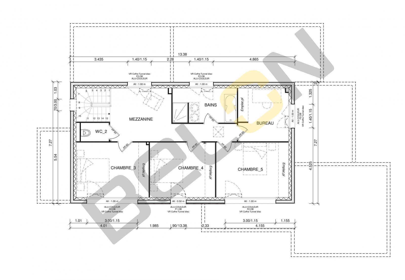Plan de maison à étage - 209m² - 5 chambres